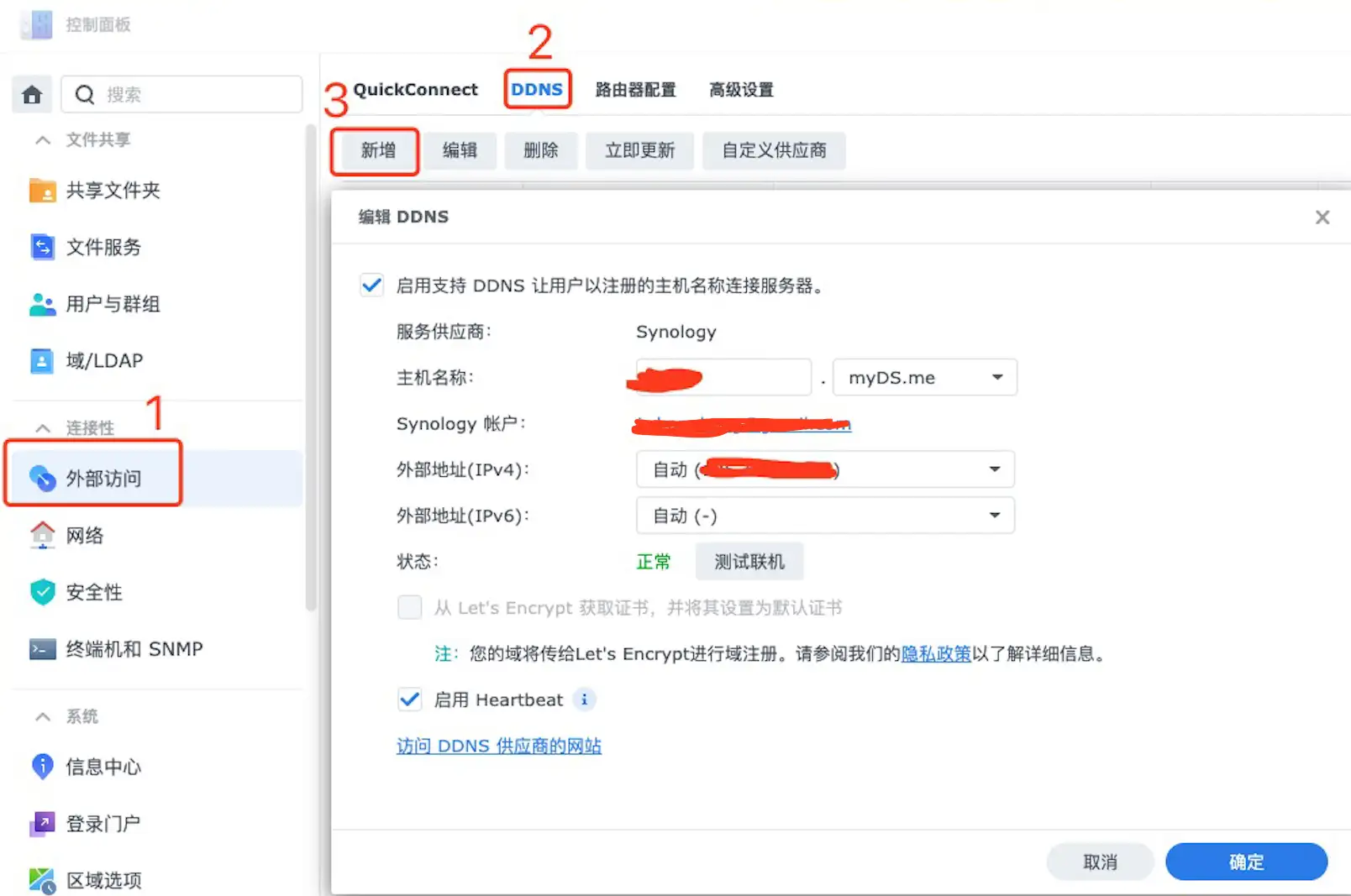 进入到控制面板 -> 外部访问 -> DDNS -> 新增: