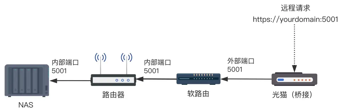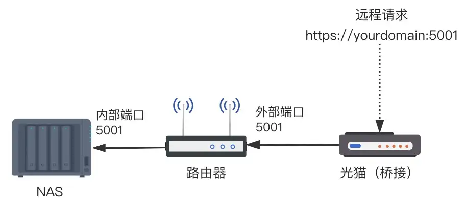 群晖提供了简单易用的 QuickConnect 来远程访问家中的 NAS, 但是因为要经过群晖服务器的中转,所以访问速度会比较慢,平时远程配置类似与下载之类的轻流量操作是没有问题,但是想直传文件,就有点儿吃力了. 所以最好是能够绕过中转,直连NAS,这就需要配置NAS的外网直连访问.