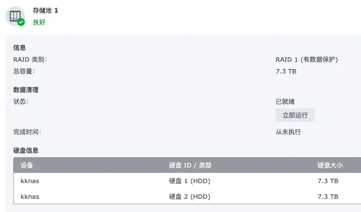- 不RAID(群晖的basic), 追求最大化的利用硬盘,毕竟每一GB都是自己的血汗钱,对于重要资料多处备份,比如网盘、冷备份等.
